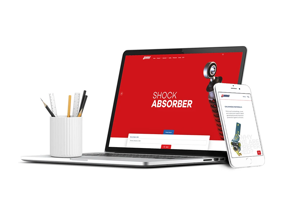 The imgspareparts website designed by MEGATON AJANS delivers a modern global digital experience focused on truck spare parts, shock absorbers and brake systems for international clients.